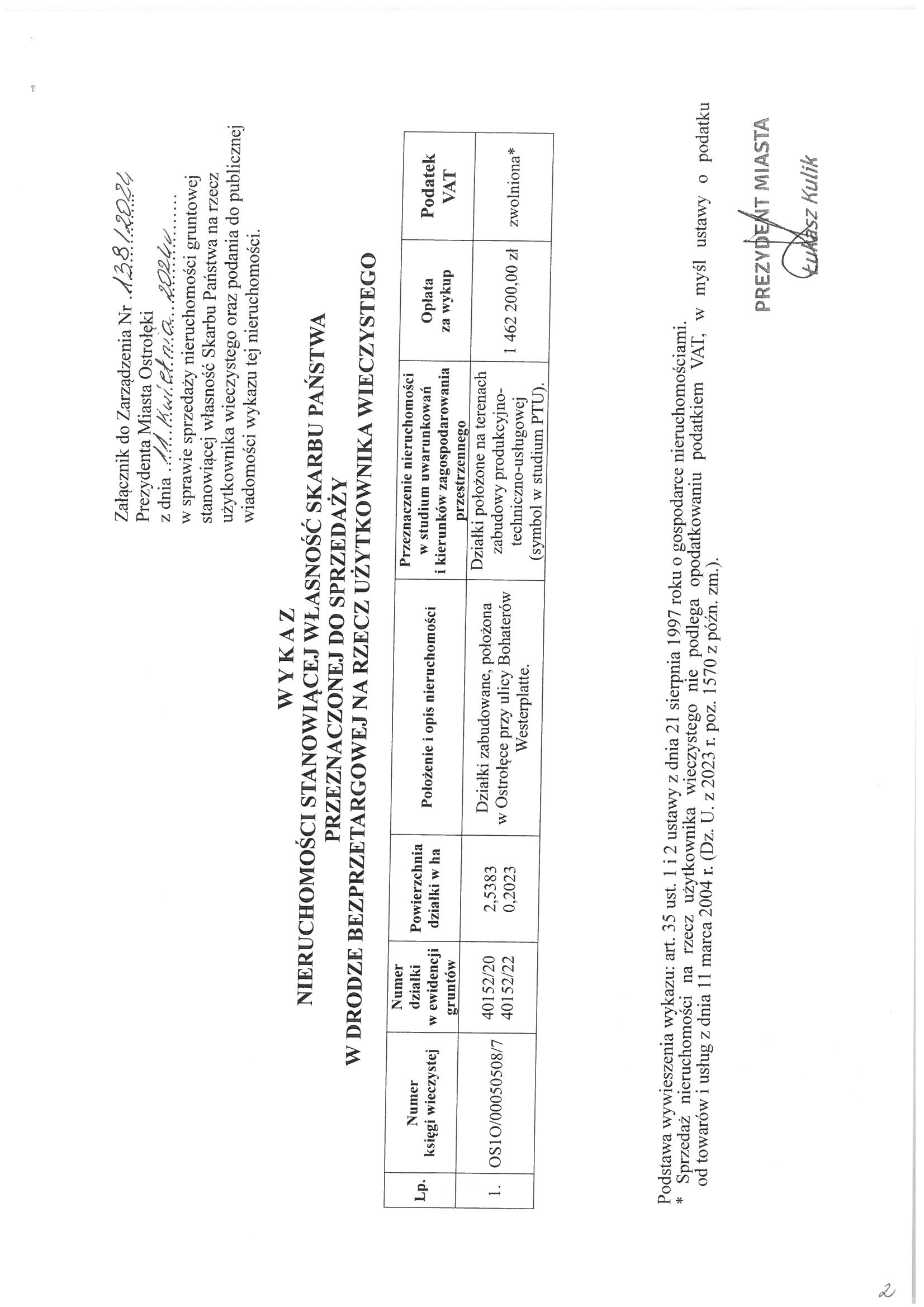 sprzedaży nieruchomości gruntowej stanowiącej własność Skarbu Państwa na rzecz użytkownika wieczystego